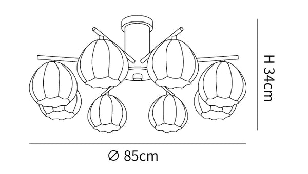 8 Lamps Size: Dia 85cm x H 34cm / ∅ 33.5″ x H 13.4″