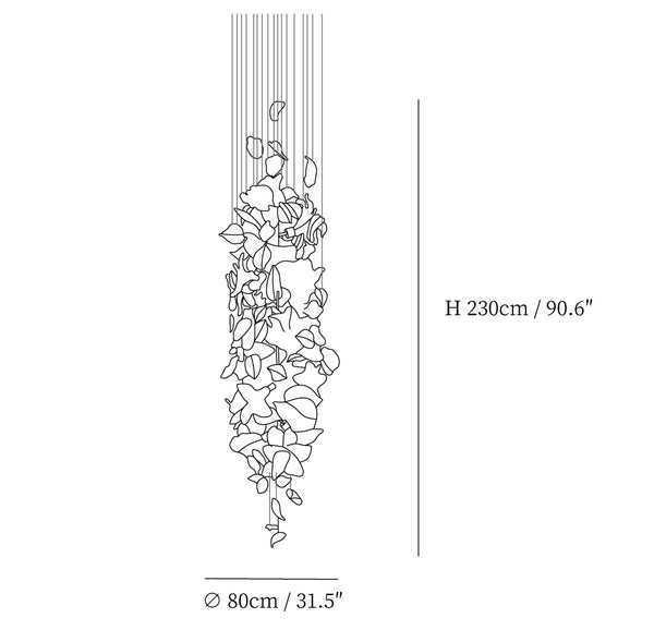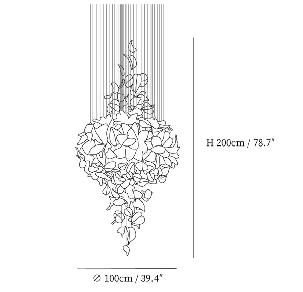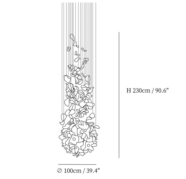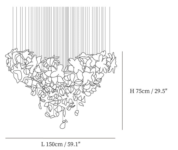 Our Flying Flowers Fluttering Chandelier offers a breathtakingly elegant aesthetic with its ivory glass petals that resemble fluttering petals descending gracefully from the light. Its luxuriously intricate design exudes a sophisticated and exclusive air, elevating the ambience of any interior.