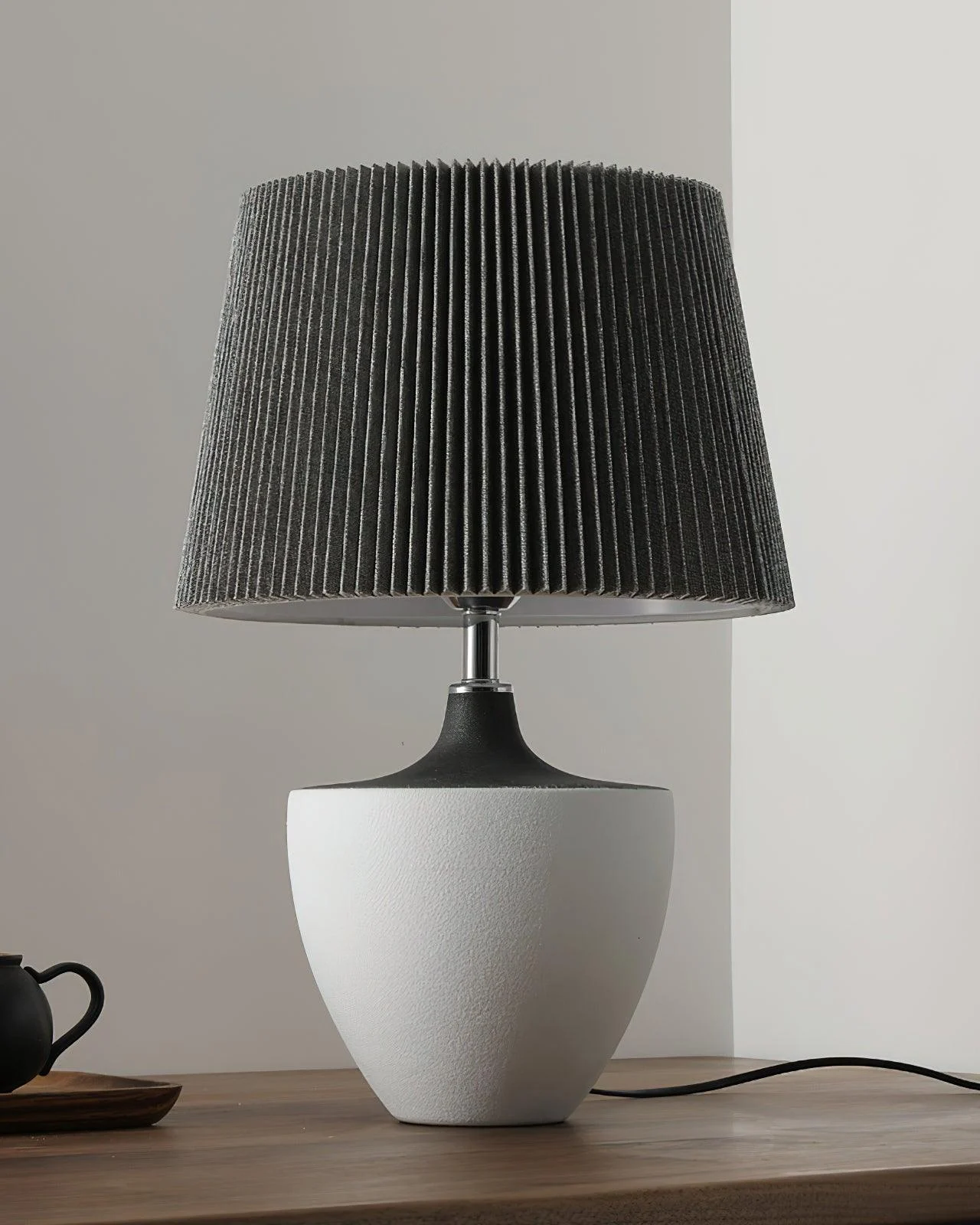 Named “Ghassan,” this table lamp interprets the perfect fusion of modernity and nature with its elegant contour and rustic material pairing. Crafted from high-quality ceramics, the lamp base features a white glaze complemented by gold accents, exhibiting a style that is both simple and luxurious. As the light passes through this fabric layer, it casts a warm and comfortable glow in the living space