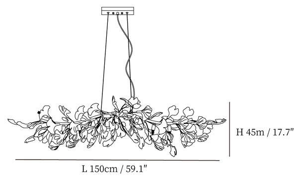 59″ Adjustable hanging height cable, which can be lengthened as required.