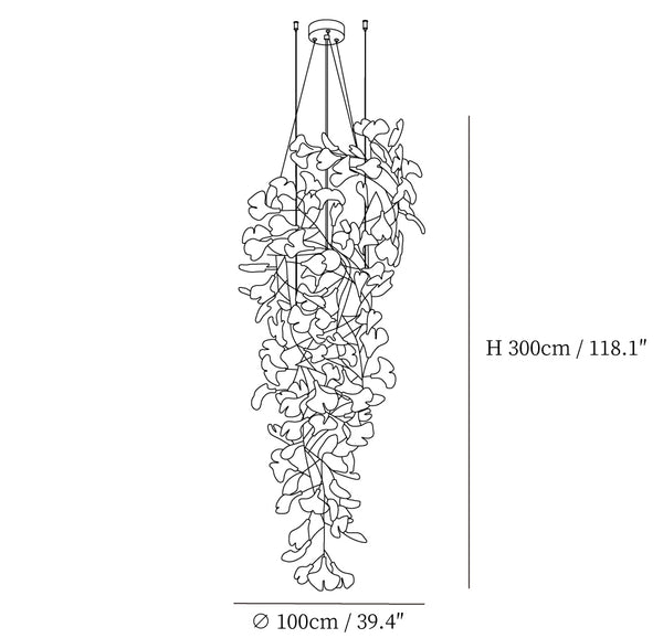 Gingko Chandeliers are impressive bespoke installations, composed of handcrafted porcelain leaves. The interplay between ceramic and light has the power to create a sense of well-being and warm atmosphere. The light sculpture goes much further than its functional purpose of lighting a space. By illuminating itself, it defines its own shape and presence, becoming a mesmerizing artwork. Like a living plant, it has a natural, dynamic energy that both calms and revitalizes us. The design of the installations goes hand in hand with the architectural space and with the ideas of the architects and interior designers.