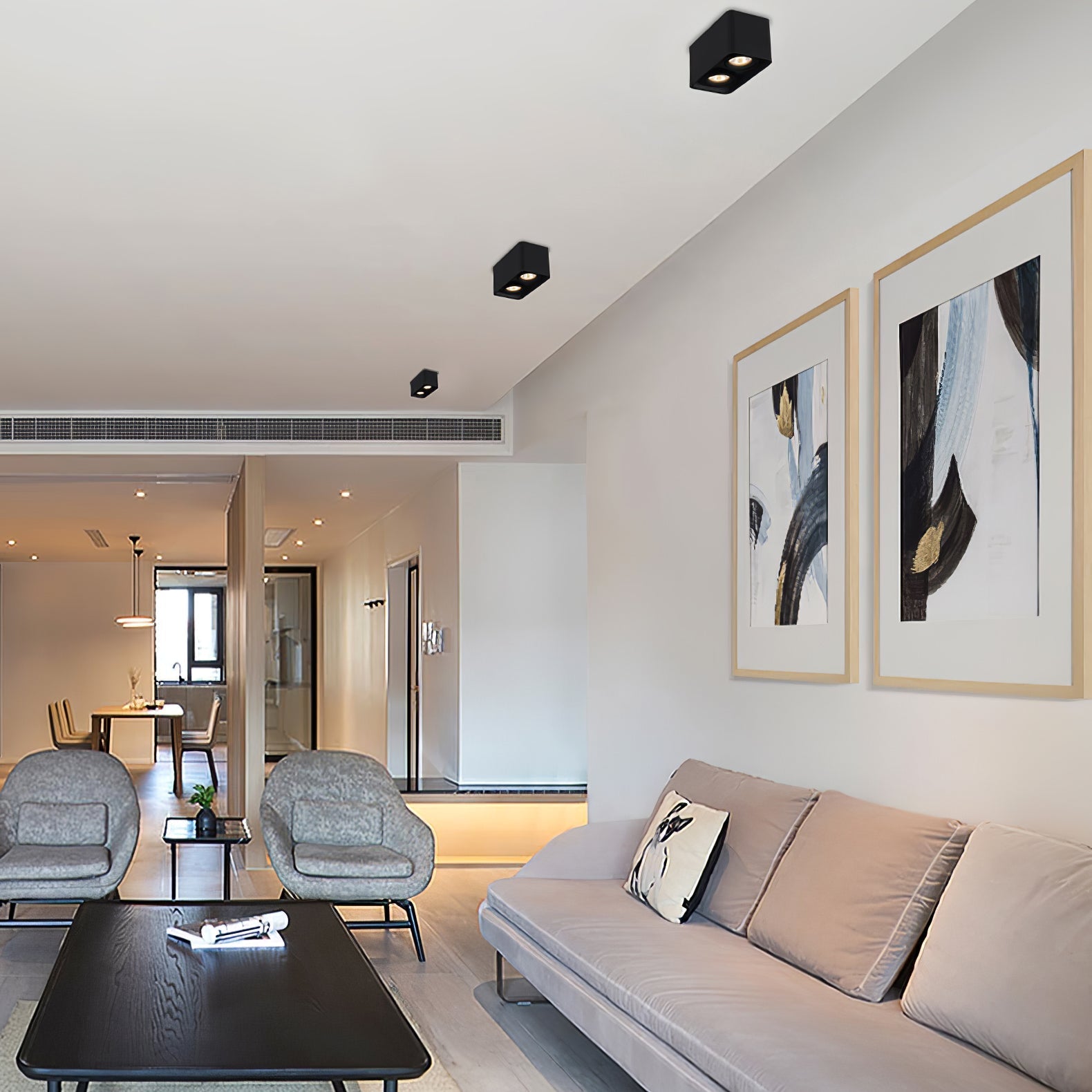 Its angular design made of steel sits directly on the ceiling and sets discreet accents. The Giyan surface-mounted light integrates effortlessly into the interior style of an apartment or is suitable for stylish shop lighting.
