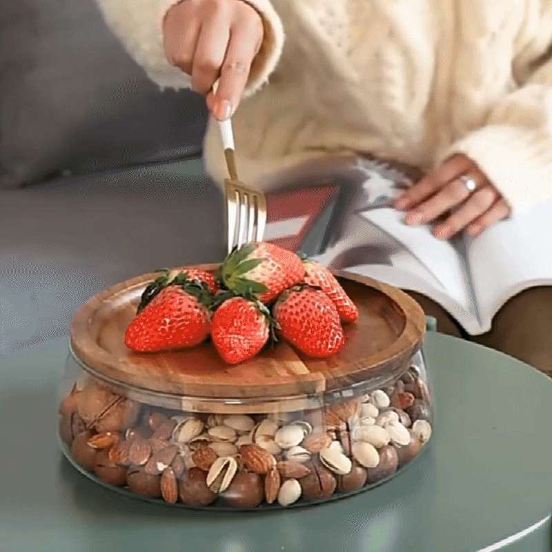 Stylish And Functional: The Perfect Glass Bowl With Wooden Lid For Storing Snacks And Sweets