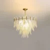 The combination of feather shape and wrought iron lines and circles reflect the full sense of three-dimensional richness. The lighting design has a sense of hierarchy and depth, and the glass lampshade with diamond texture is comfortable and not dazzling, creating a comfortable light environment.