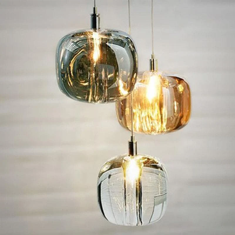 The Glass Pendant Light is made of crystal with rounded edges creating an organic shape. Due to its translucency, light emits softly from the center of the fixture. This soft lighting makes it a great choice for modern spaces.