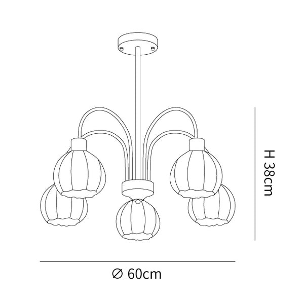 5 Lamps Size: Dia 60cm x H 38cm / ∅ 23.6″ x H 15″