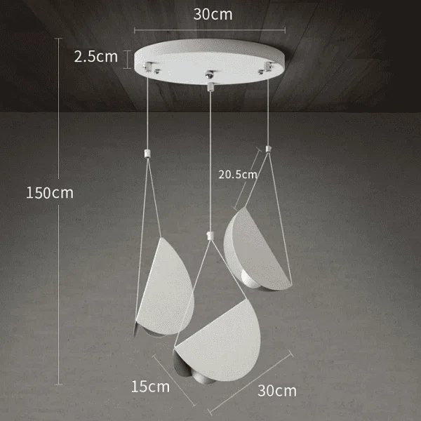 A simple, delicate minimalist floating light chandelier. Creating the illusion that it is seamlessly frozen and suspended in air.