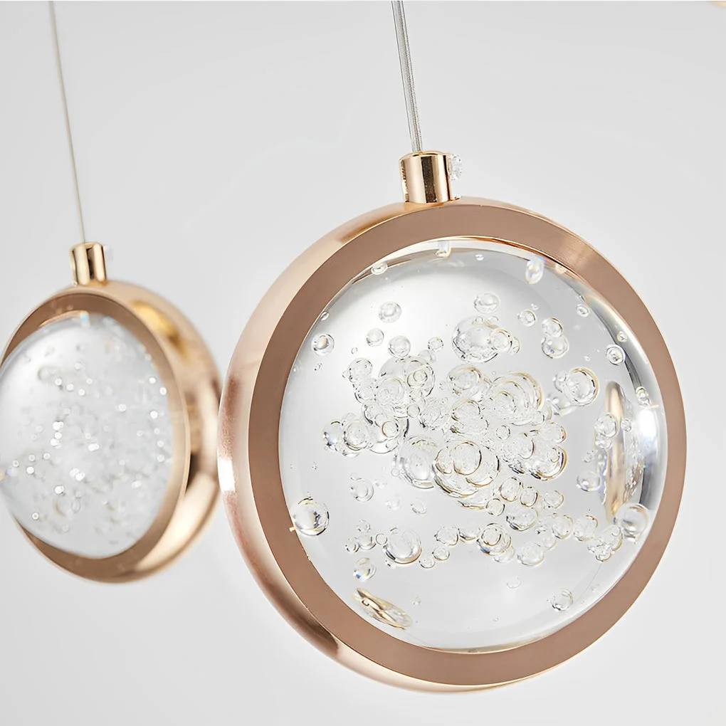 - And the crystal lampshade of the chandelier is polished and then injected with gas by hand, forming globals of different sizes, achieving a unique design and decor effect.
