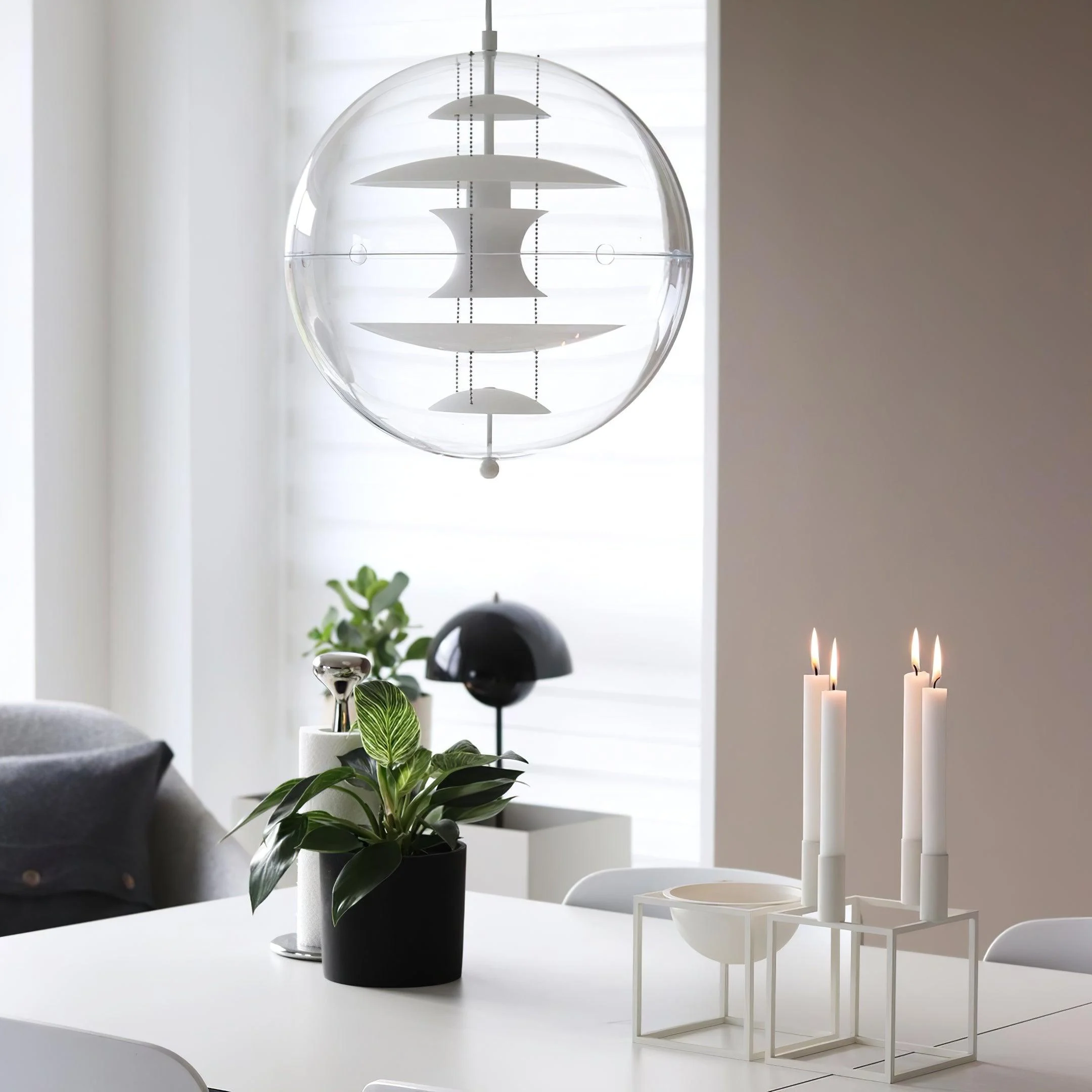 The VP Globe Pendant Lamp offers a unique experience of light and color, interweaving the radiance of its clear acrylic glass shade with the technical coolness of its aluminum reflectors. It’s an ornamental work of art that will draw all eyes, creating a sophisticated and exclusive atmosphere. Perfect for elevating any space, this lamp is a luxurious way to set the mood.
