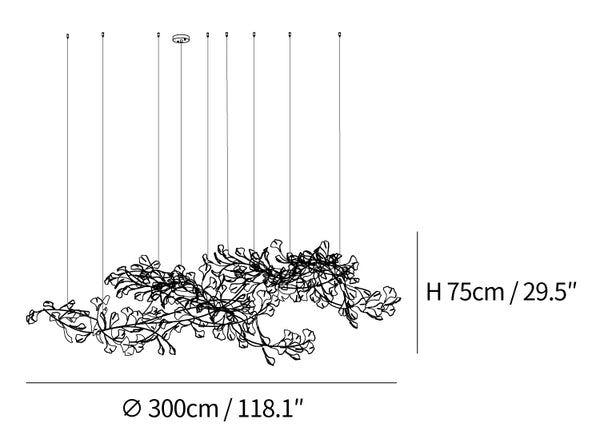 Gingko Chandelier TWO is made up of two lamps spliced together, creating a stunning visual centerpiece. To ensure proper installation and functionality, it is essential to reserve two junction boxes at the top.