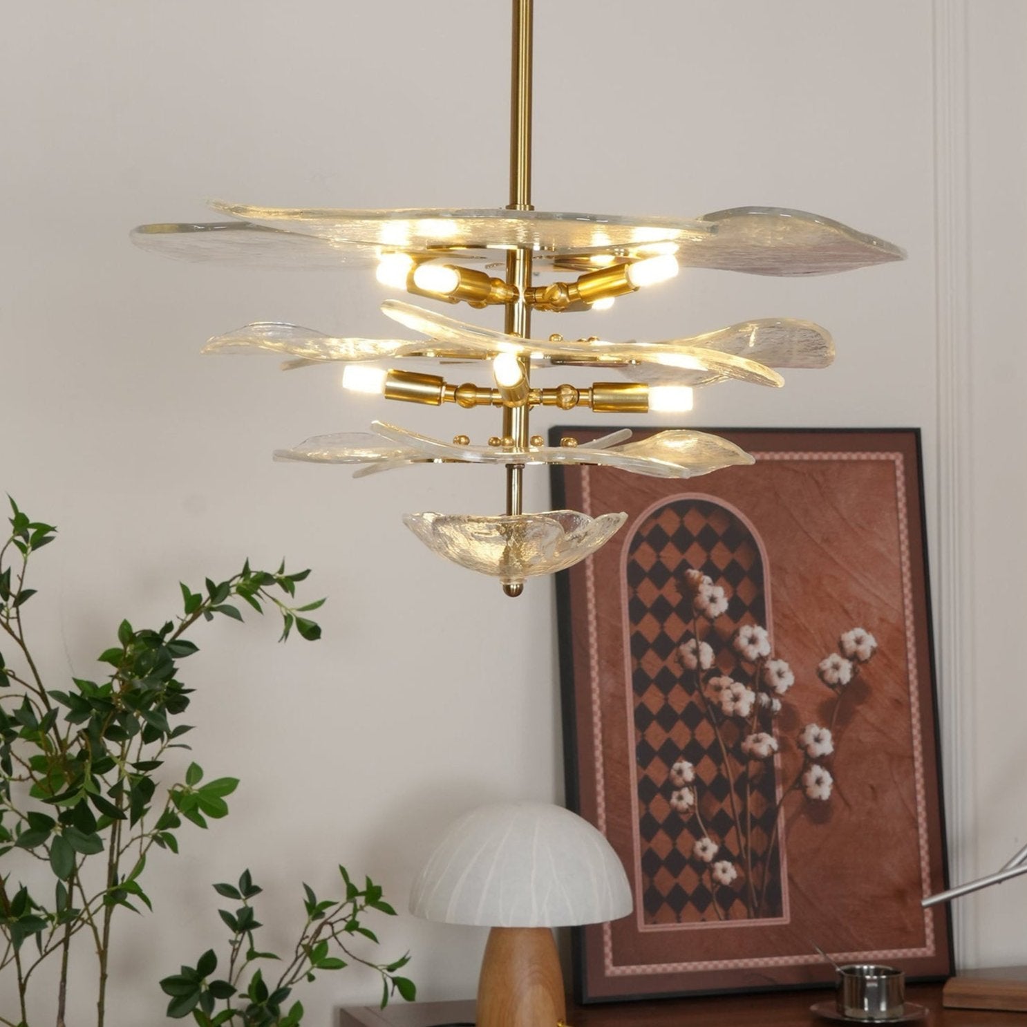 The Golden Petal Chandelier is a captivating blend of nature-inspired elegance and modern luxury. Its layered, petal-like glass discs in warm amber hues mimic the gentle flow of flower petals, casting a soft, ambient glow that adds warmth and sophistication to any space. Suspended by a sleek gold rod, this chandelier is a perfect statement piece for dining rooms, living rooms, or entryways, bringing a radiant touch of elegance to your decor.