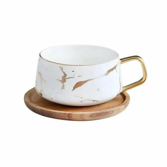 The Goldtiek Mug..Sleek coupe shapes paired with a mesmerizing pattern showcases contemporary style while gleaming gold banding completes the look.