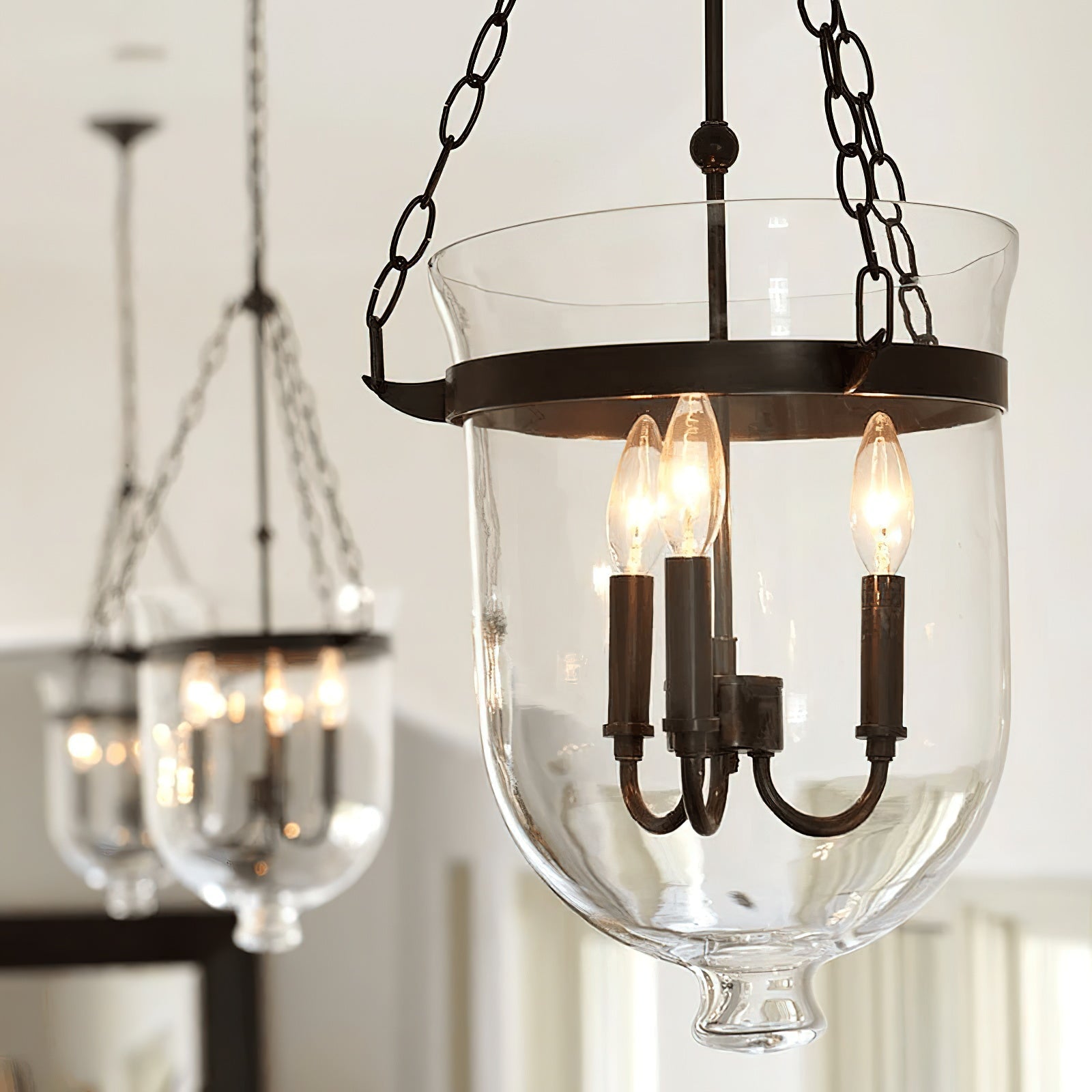 Blending the best of both contemporary and rustic styles, this sleek pendant is a perfect pick for your modern farmhouse aesthetic. The frame is crafted from metal with three chain hangers and three arching arms topped. The glass shade is inspired by classic cloches, and has a clear, non-tinted design that lets the light shine through with a bright glow. It features an adjustable height.