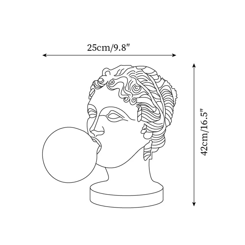 This lamp features a beautifully sculpted bust of a Grecian figure, whimsically blowing a bright pink bubble, which illuminates to add a delightful pop of color to any room. Crafted with attention to detail, the statue’s matte white finish contrasts strikingly with the glowing pink bubble, creating a stunning visual statement.