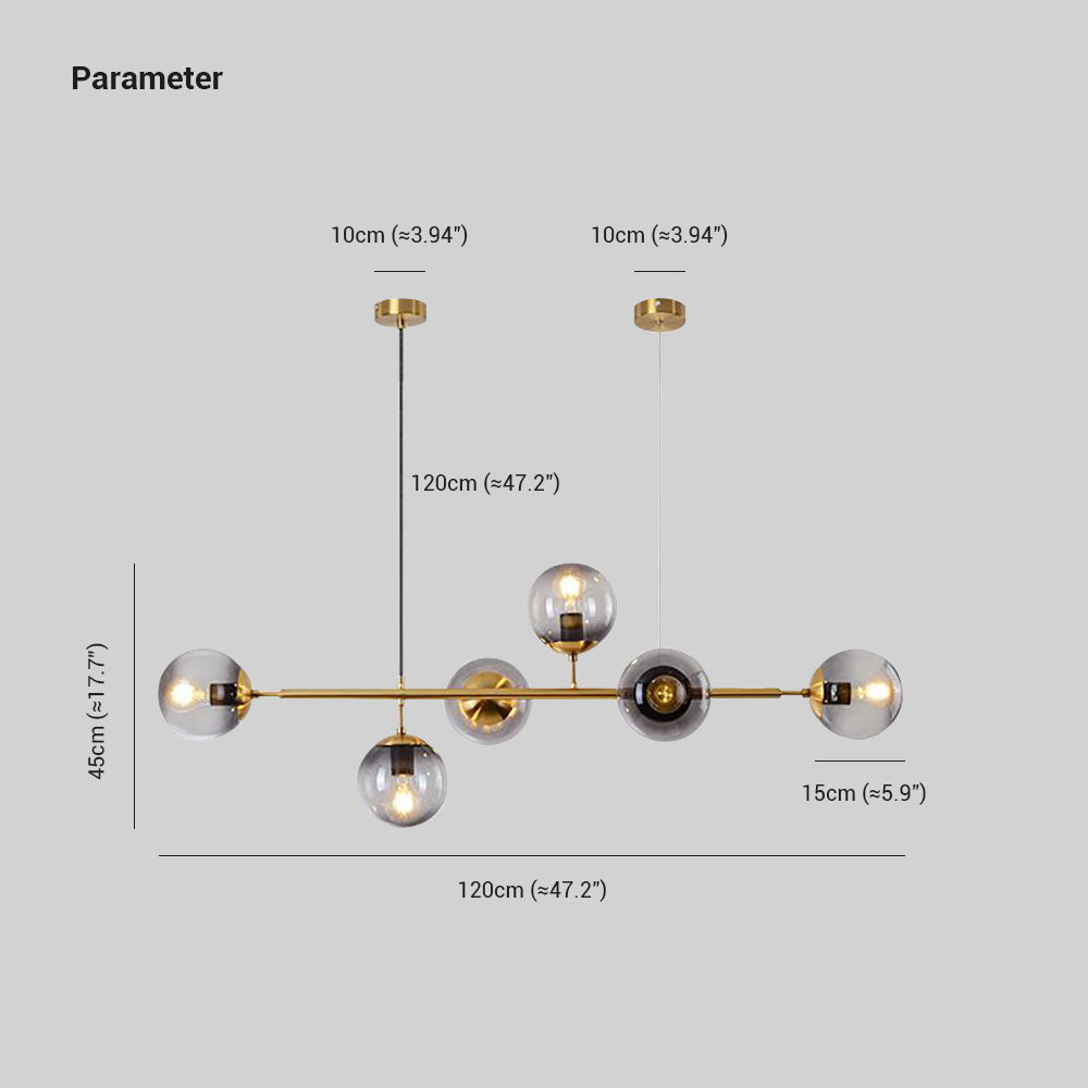 Gray Glass Ball Multi-Head Pendant Light