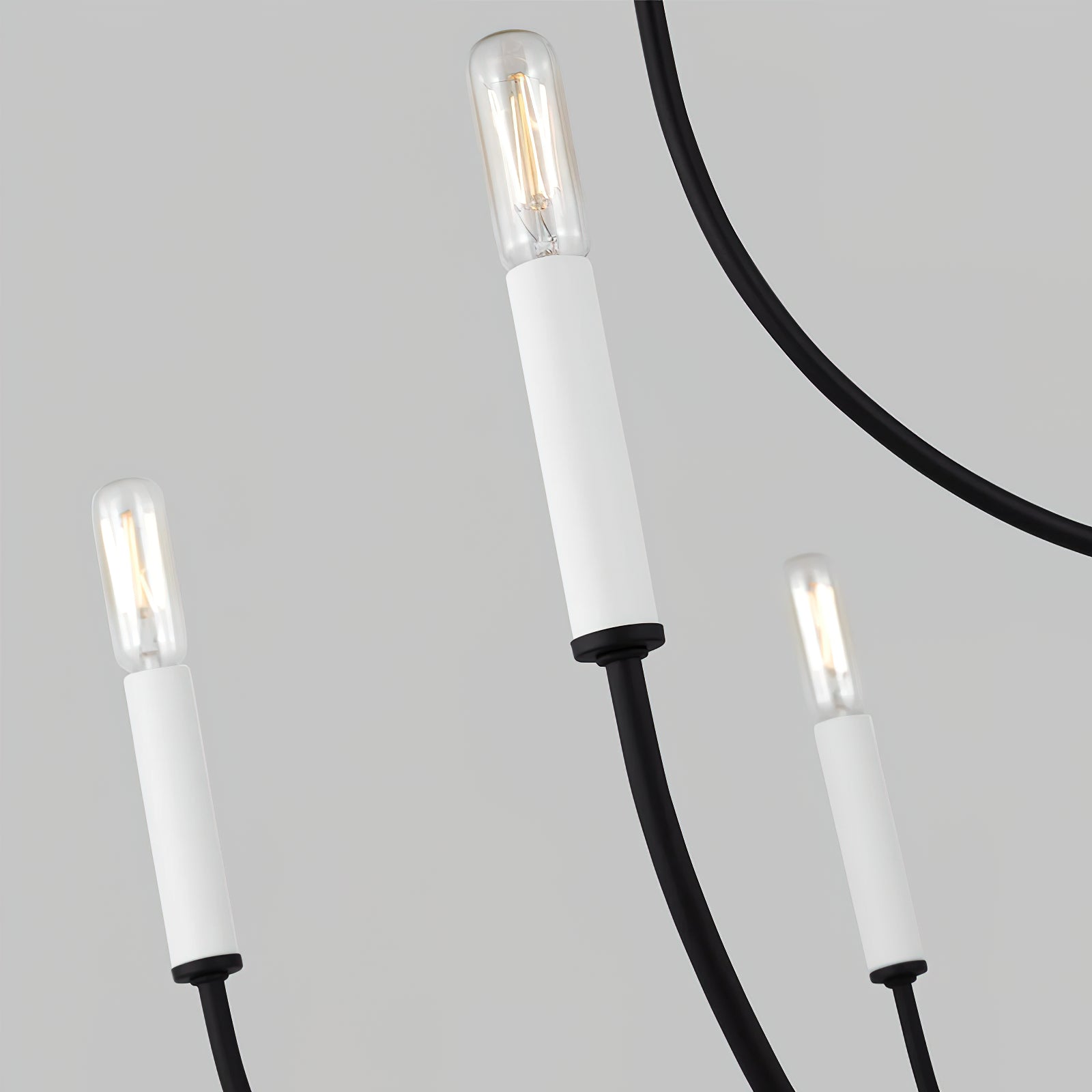 Airy and light, the Greenwich Chandelier is the epitome of the less is more approach to design. The open J arm frame with matching or contrasting white candle tube accents the soft curves of the frame beautifully for a dramatic impact. This collection can also accommodate shades for more refined styling.