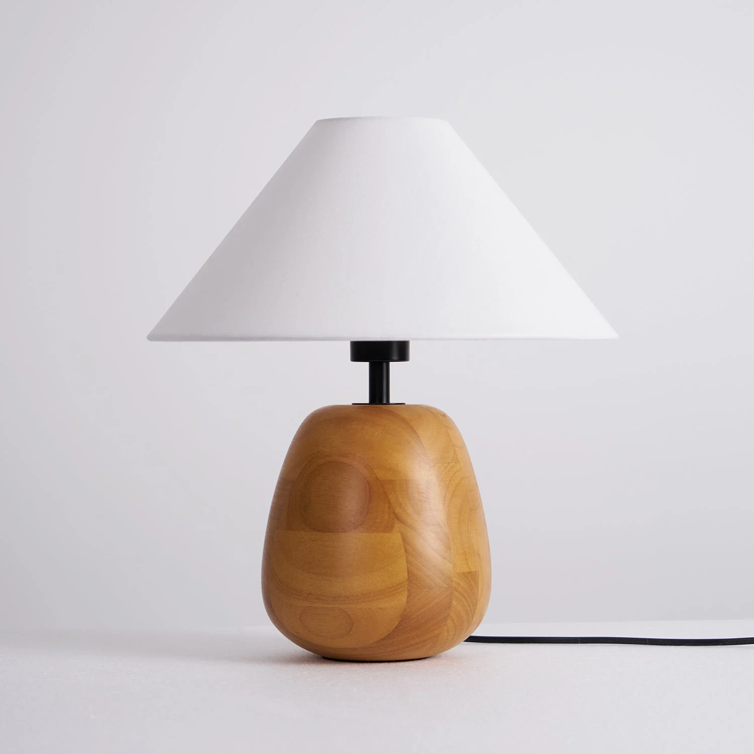 This Groove Wood Table Lamp features a minimalist yet warm design, blending natural elements with modern home aesthetics. The base is crafted from high-quality wood, meticulously shaped to reveal the natural grain and a cozy hue of the timber. Paired with a classic white lampshade, it emits a soft and even light that brings a touch of tranquility and harmony to any space.