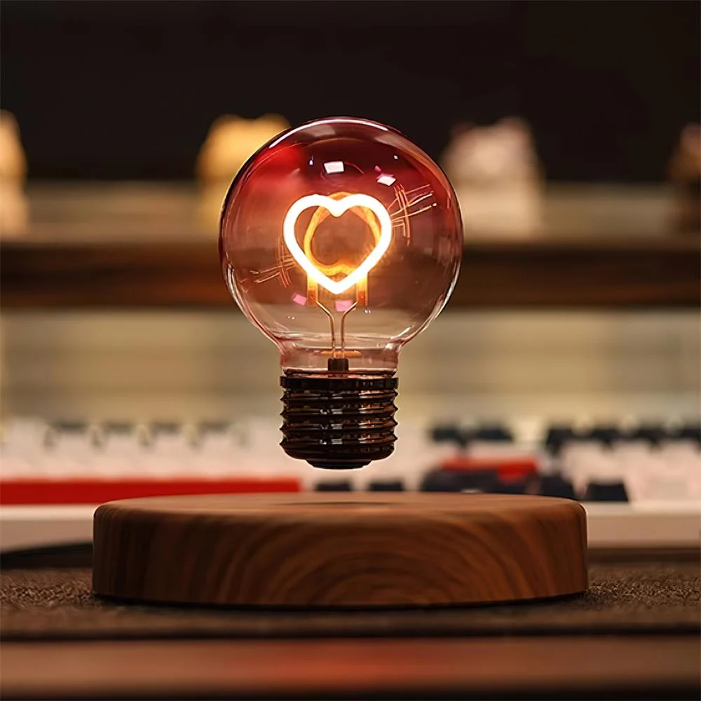 This captivating lamp features a magnetic levitation system that allows the heart-shaped filament to float and spin freely 360°, creating a mesmerizing visual effect. The strong magnetic base not only facilitates this magical suspension but also securely catches the bulb if the power is interrupted, ensuring safety and durability. With a simple touch switch, this lamp illuminates to reveal a gentle pink glow, Embrace the blend of art and science in your decor with this strikingly beautiful and technologically advanced lamp.