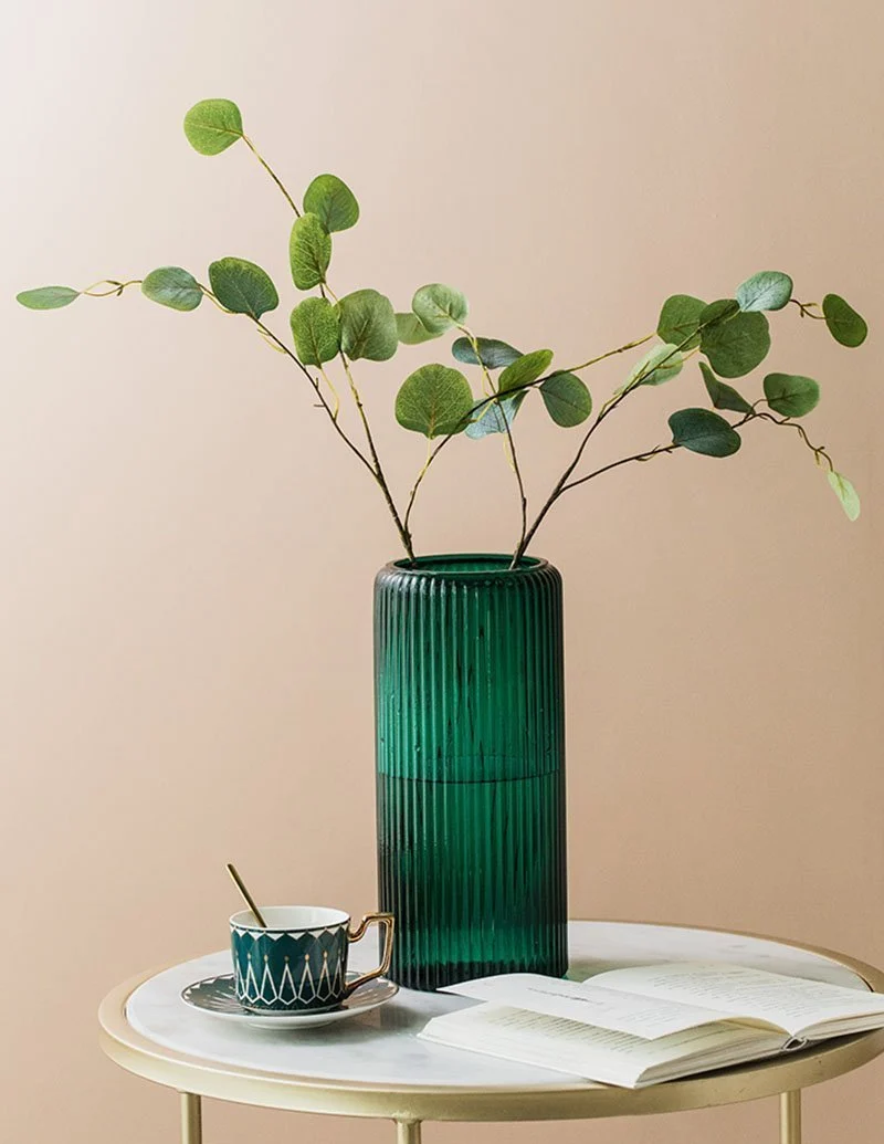 The beauty in life lies in constant exploration and discovery, and every small ornament reveals the taste of the owner. The striped green cylindrical design makes the visual effect of plants full; plenty of spacecan meet different needs. High-quality glass material, transparent and layered, showing unique craft texture. Exquisite and creative image decoration adds a different style to home life.Let this unique vase adds luster to your home environment.