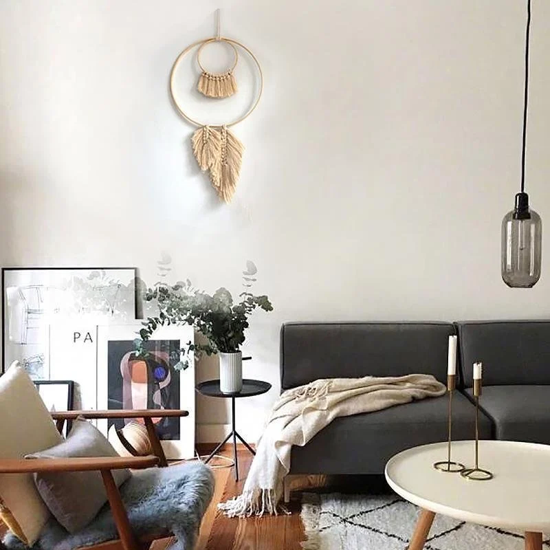 A clever mix of Bohemian style and geometric elements, this beautiful wall hanging is sure to show the sense of atmosphere and the idea of simplicity as it hanging on the wall of your arrangement. The indifference of ins style determines that it can be applied to various decorative fields, such as home furnishing, wedding, jewelry, and so on. Natural bamboo circle and feather shape design, elegant and retro.