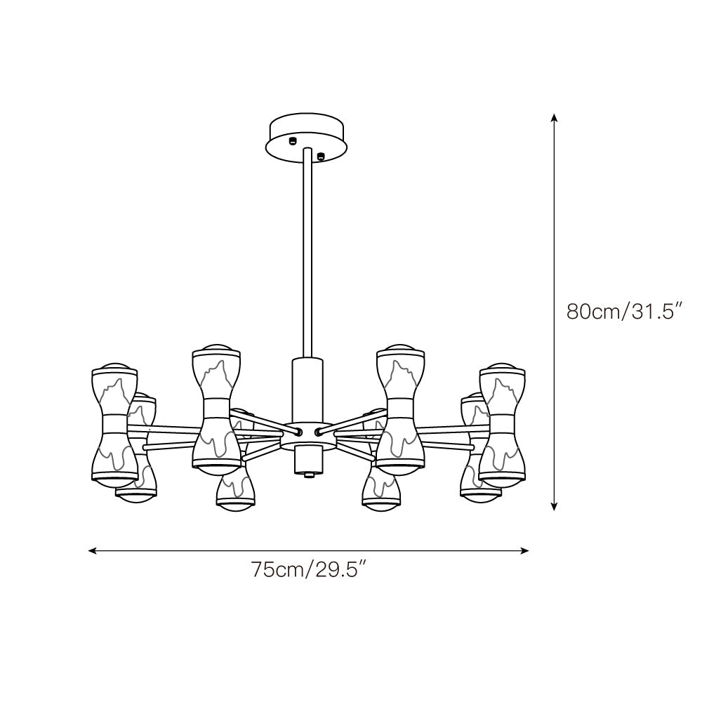 This gorgeous vintage yet modern design LED chandelier is truly one of a kind. At the center is a vertical transparent cylinder that extends out into six designed arms with elegant upward and downward acrylic, each die-cast shade beautifully ignoring the light.