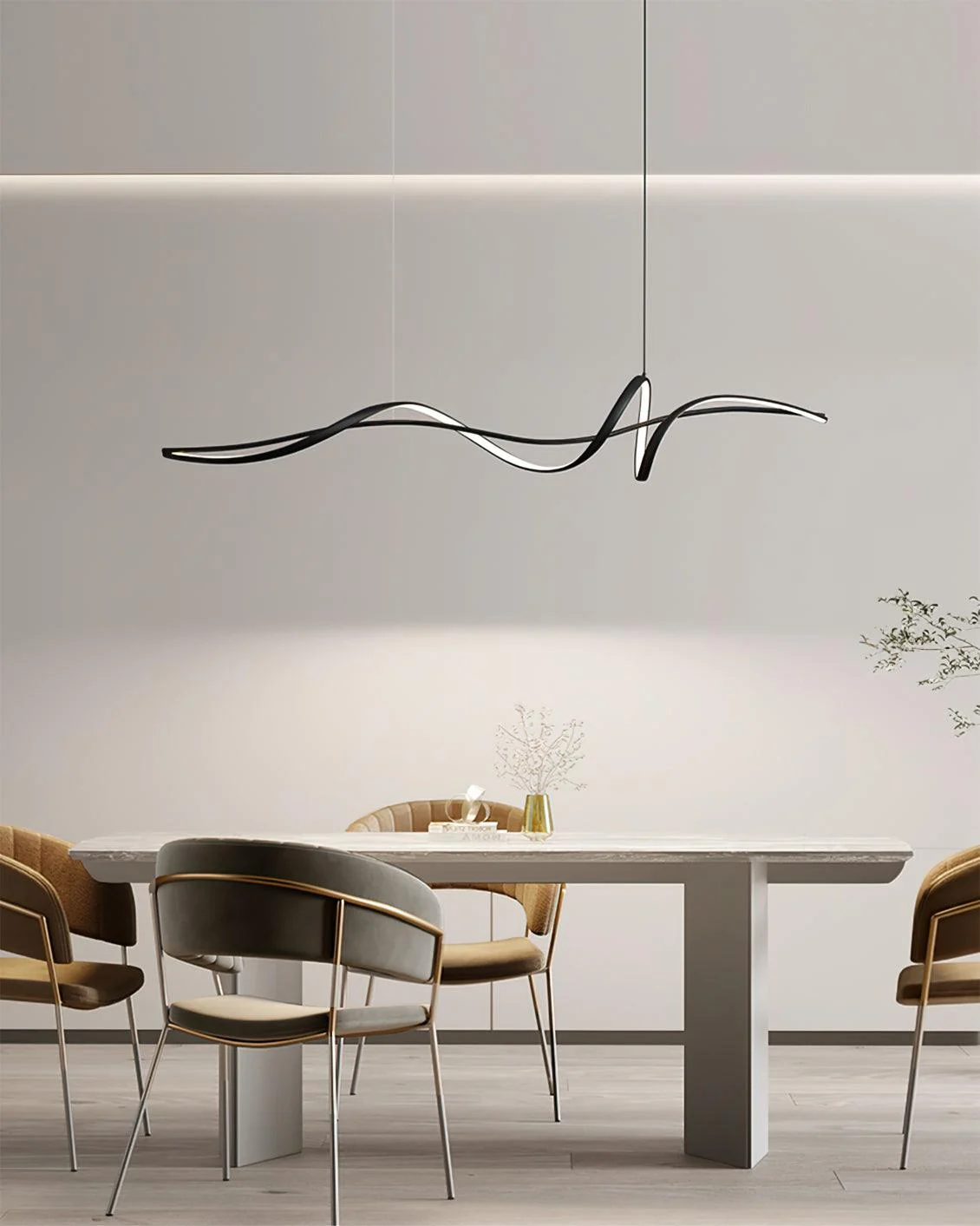 The Inari Line chandelier adds a touch of elegance to any dining area. Its combination of geometric shapes and lines offers a sophisticated, minimalistic look. Designed specifically for long tables, this chandelier will make a stylish statement.