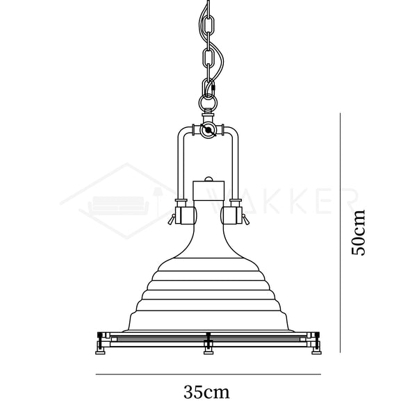 This polished chrome, industrial-style pendant light is perfect for creating a soft, warm lighting in any room. Durable and sturdy, it features an integrated diffuser to deliver an even, nautical-style glow.