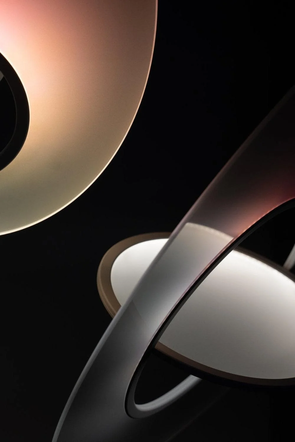 Introducing Introvert Extrovert, a pendant light that explores the balance between introversion and extroversion. It features a dimmer switch that transitions between the two states. In introverted mode, soft light shines inward, while in extroverted mode, it radiates outward, highlighting the edges with a blush of color. Crafted from two etched glass sheets, it embodies the contrast between introversion and extroversion, with the circular ‘Introvert’ emitting white light inward and the ‘Extroverted’ elliptical form illuminating with gentle hues when brightness is increased. These two personalities coexist in harmony.