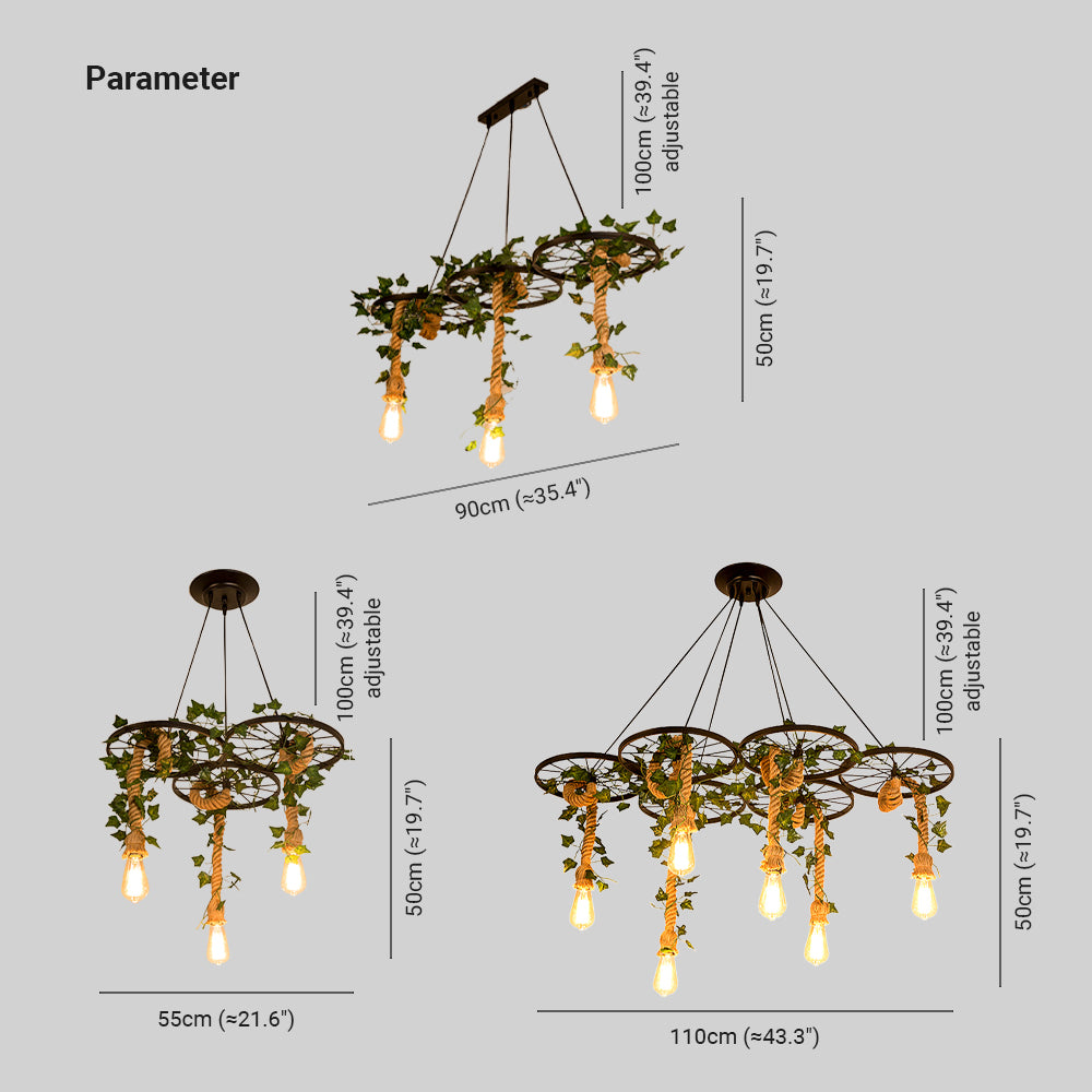 Iron Ring Hemp Rope Black Industrial Chandelier
