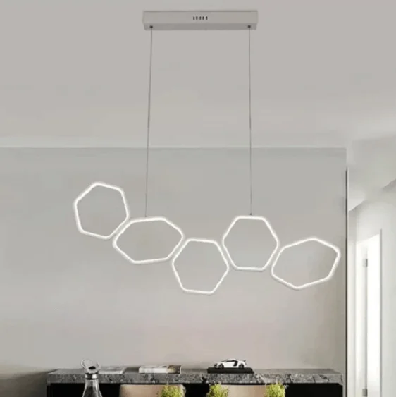 Jocasta a bold yet elegant chandelier featuring a unique, faceted geometric design. Crafted from sturdy metal and featuring crisp, bright LED illumination, this chandelier exudes a classic art deco style. Its contemporary design infiltrates any space with radiant atmospheric lighting, making it perfect for a modern home. Its energy-efficient LED bulbs last up to 20,000 hours of usage, making Jocasta an energy-saving and cost-effective lighting solution.