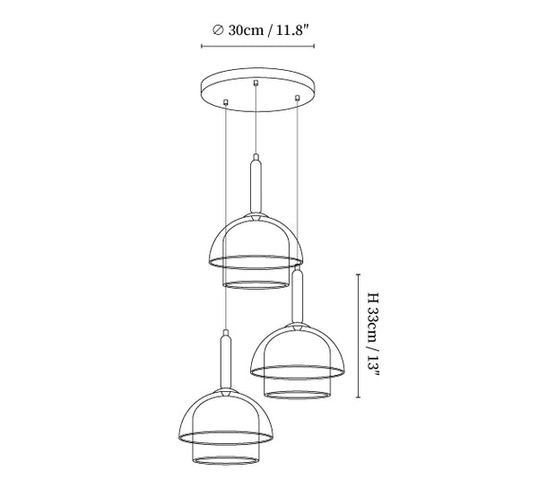 Model B 3 heads Size: Dia 30cm x H 43cm / ∅ 11.8″ x H 17″