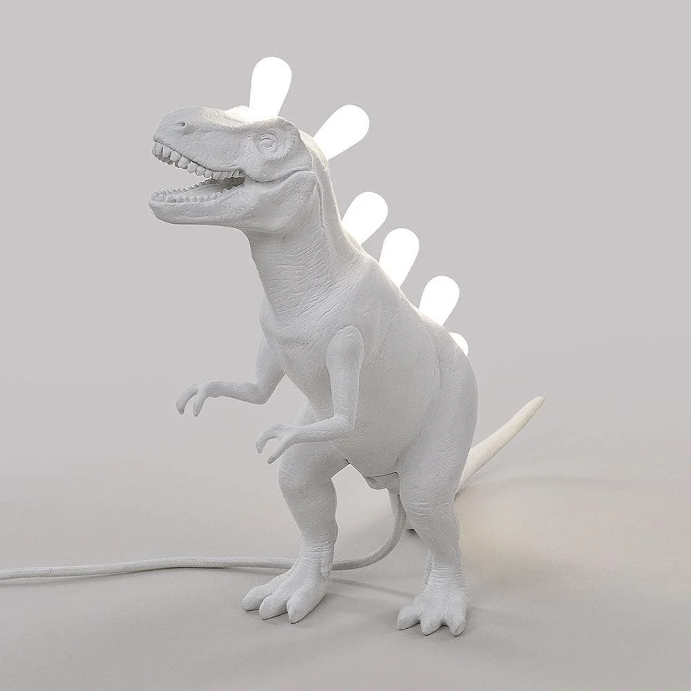 Jurassic Table Lamp is made of resin and it is characterized by a brilliant and unusual design. Bizarre and creative detail is a sequence of light bulbs on the back of this dangerous prehistoric Rex animal. This white table lamp of perfect to complete your home decor with imagination and to surprise everyone.