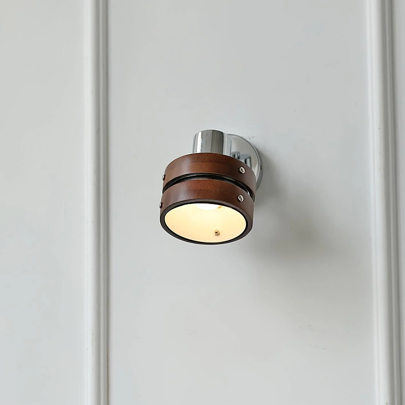 The Karry Wall Lamp Crafted from chrome-finished metal and rich walnut wood, this elegant fixture embodies the essence of Japanese aesthetics. With its tiltable design, it allows you to customize your lighting experience, adding a touch of versatility to your space while blending the best of metal and solid wood materials.