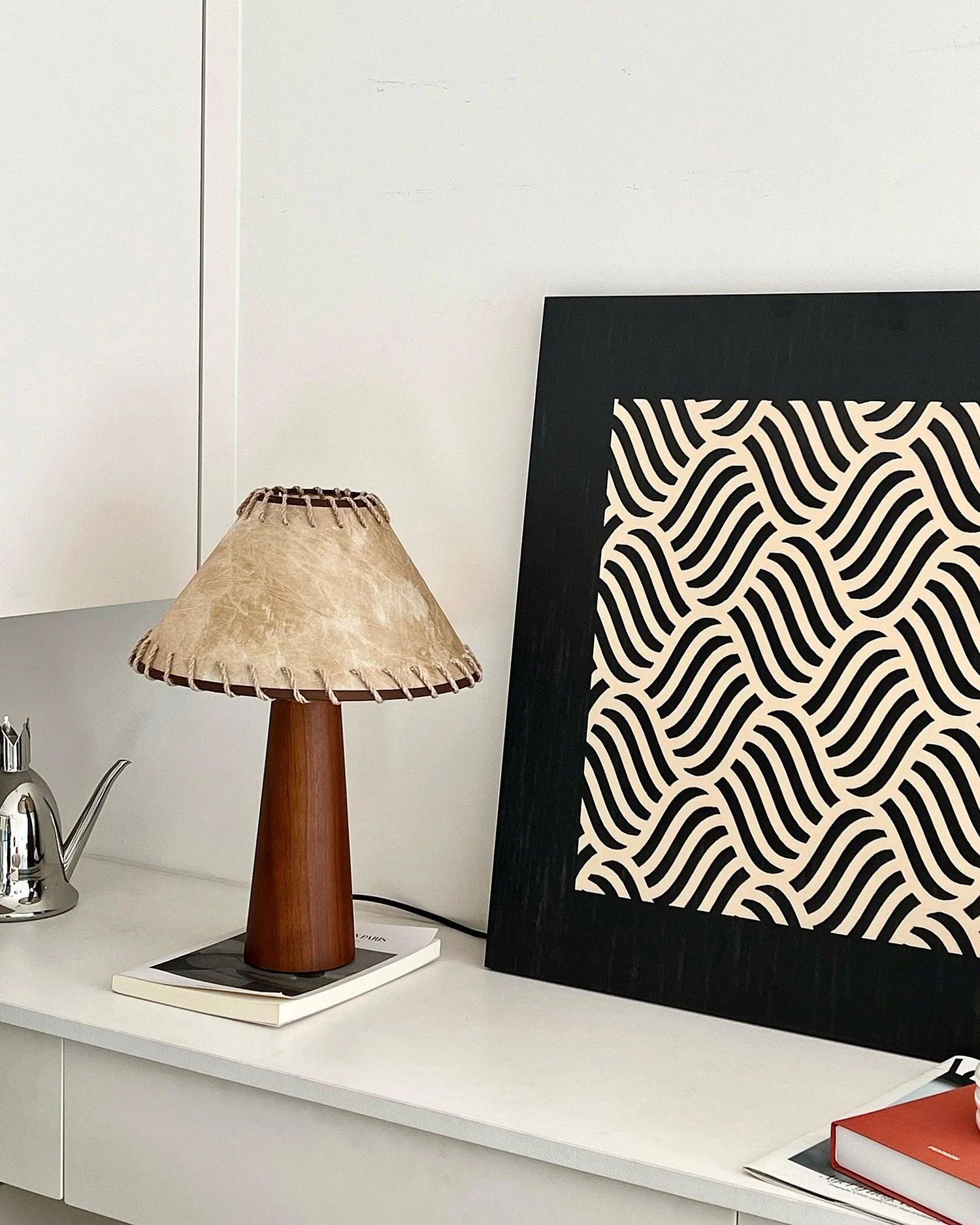 vintage-inspired glow with Kibo Wood Table Lamp. It features a distinct shade made of jute, knotted with a unique pattern, that will make any room feel stylish and sophisticated. Its classic yet modern design will make a statement in any living space, making it the perfect way to bring elegant sophistication to your home.