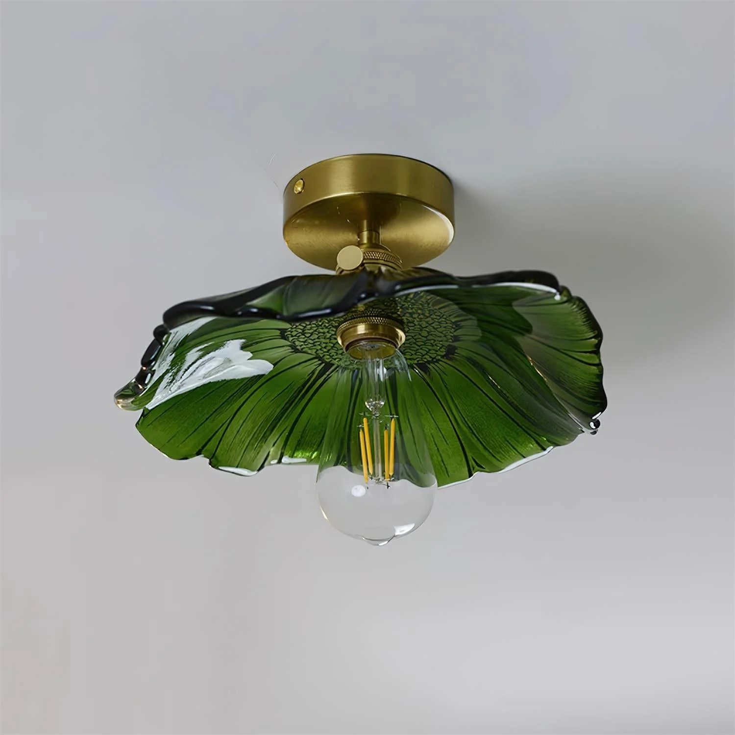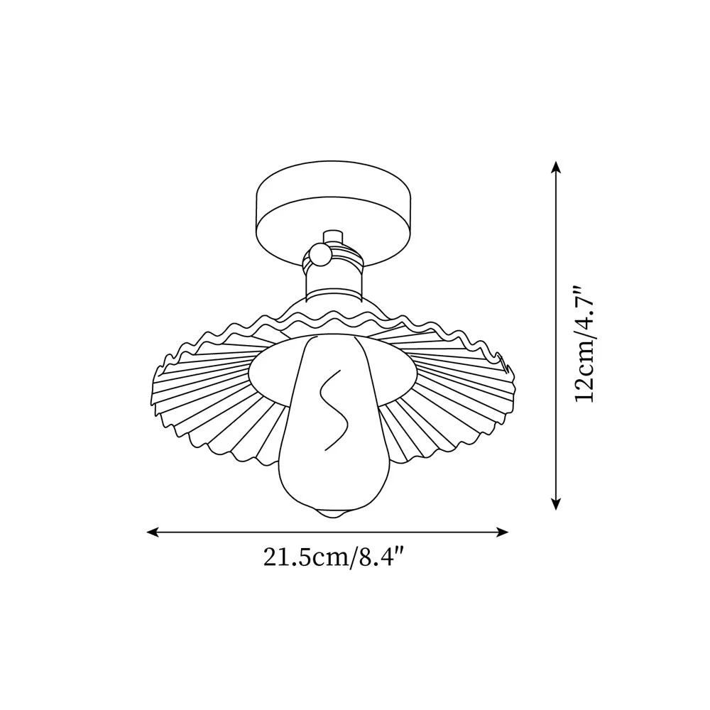 Introducing the captivating charm of the Kinney Ceiling Light, a masterpiece that combines exquisite craftsmanship with functional illumination. This fixture features a stunning glass shade whose wavy, petal-like edges motifs bring a touch of organic elegance to any space. The Brass base enhances the richness of the light, casting a warm, diffused glow that accentuates the delicate patterns on the glass.