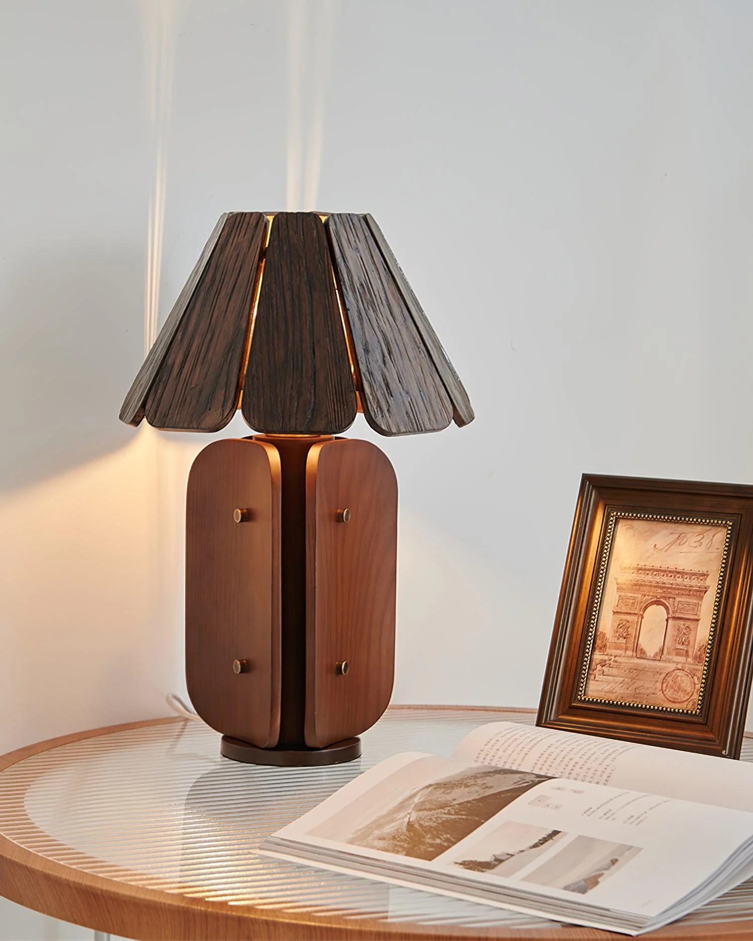 Step into a world where classic design meets contemporary charm with the Kubec Table Lamp. This piece stands out with its wooden craftsmanship that beautifully encapsulates the fusion of nature and modernity. The unique, slatted wood shades create a stunning play of light and shadow on your walls, enveloping the room in a warm, inviting aura.