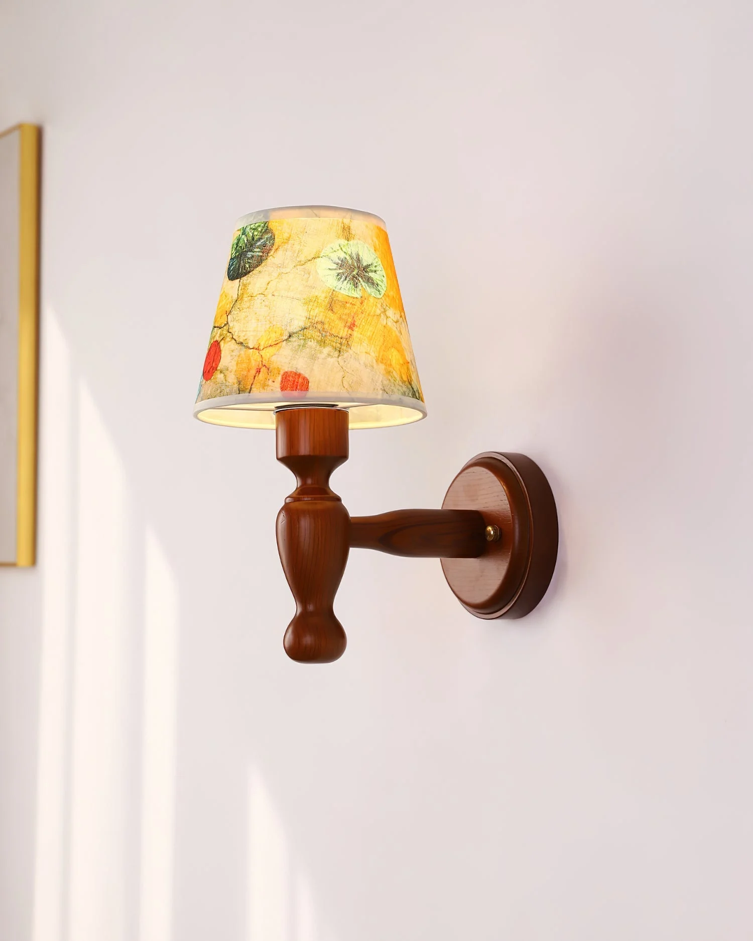 This Kuli Wood Wall Lamp presents a harmonious blend of traditional wood craftsmanship and a strikingly patterned shade, offering a distinctive yet understated aesthetic. The finely carved wooden arm cradles the vibrant lampshade, adorned with intricate designs that evoke a sense of adventure and creativity.