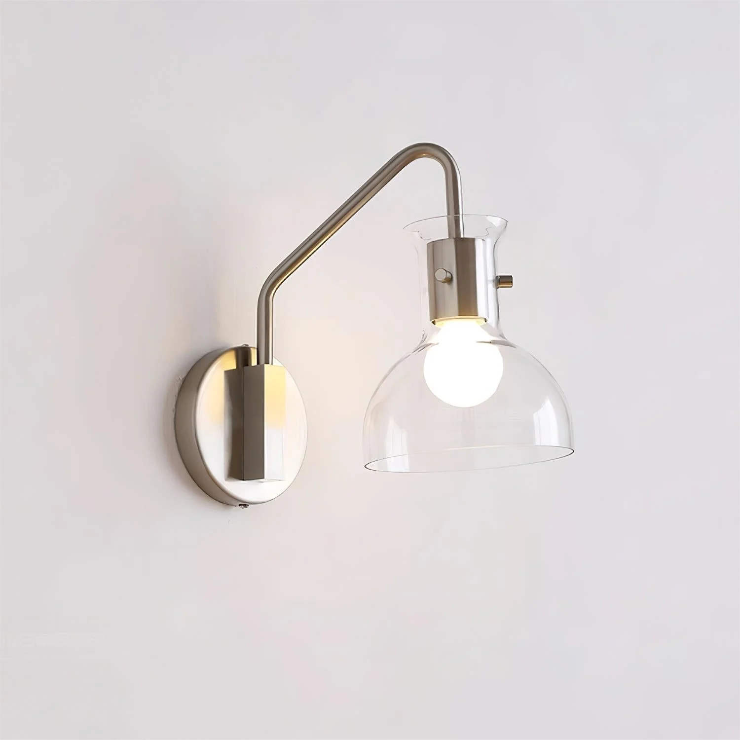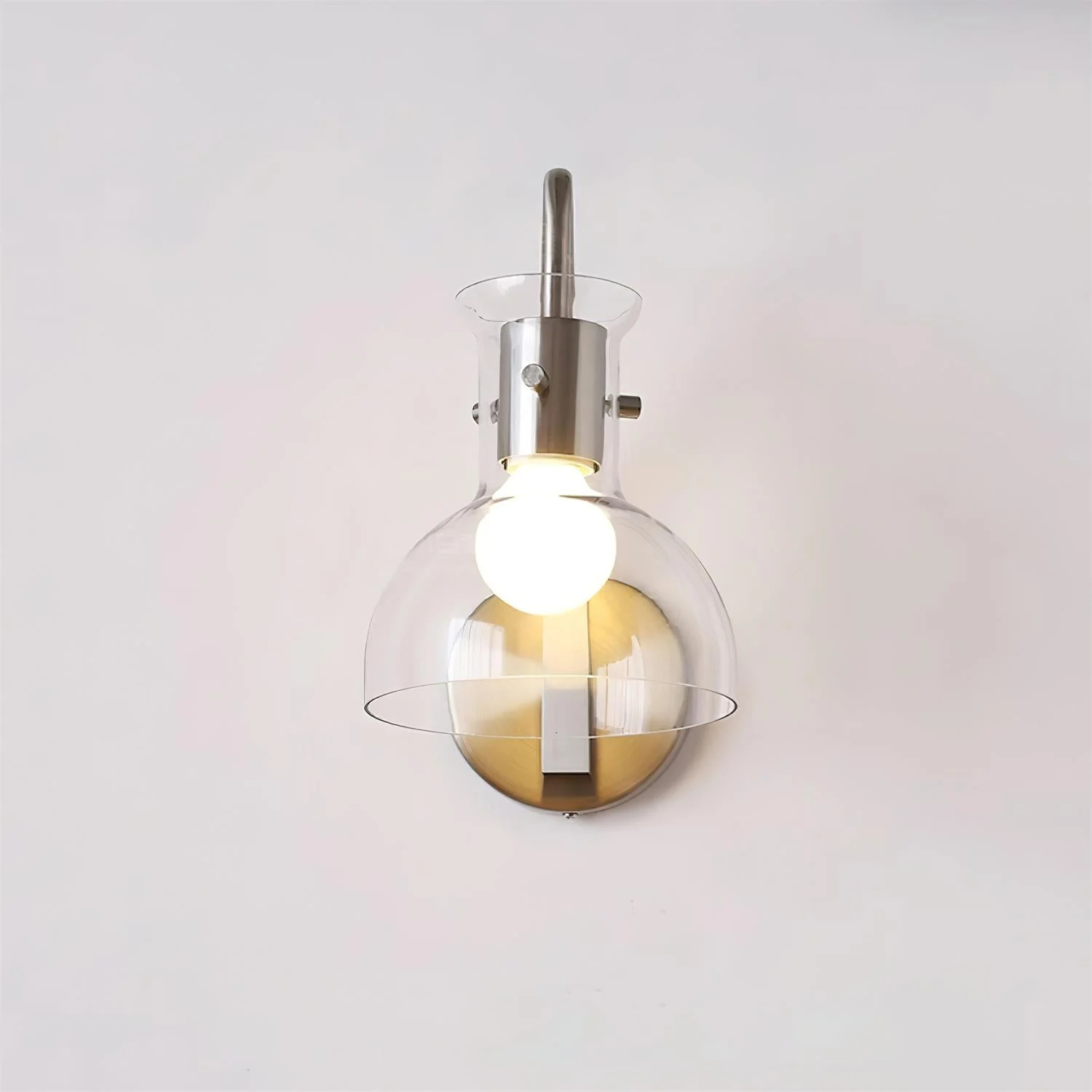 Elegantly blending modern functionality with vintage charm, the Laito Glass Wall Lamp is a statement of minimalist sophistication. Available in both frosted and clear glass shades, its versatile design provides a soft ambient glow while complementing a variety of interior styles. The sleek metal arm and mount offer a timeless contrast to the smooth glass, making it an ideal choice for those looking to elevate their space with understated elegance.