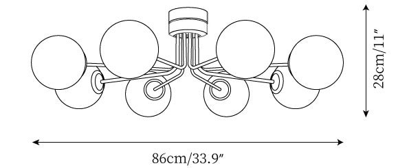 8 Heads Size: Dia 86cm x H 28cm / ∅ 33.9″ x H 11″