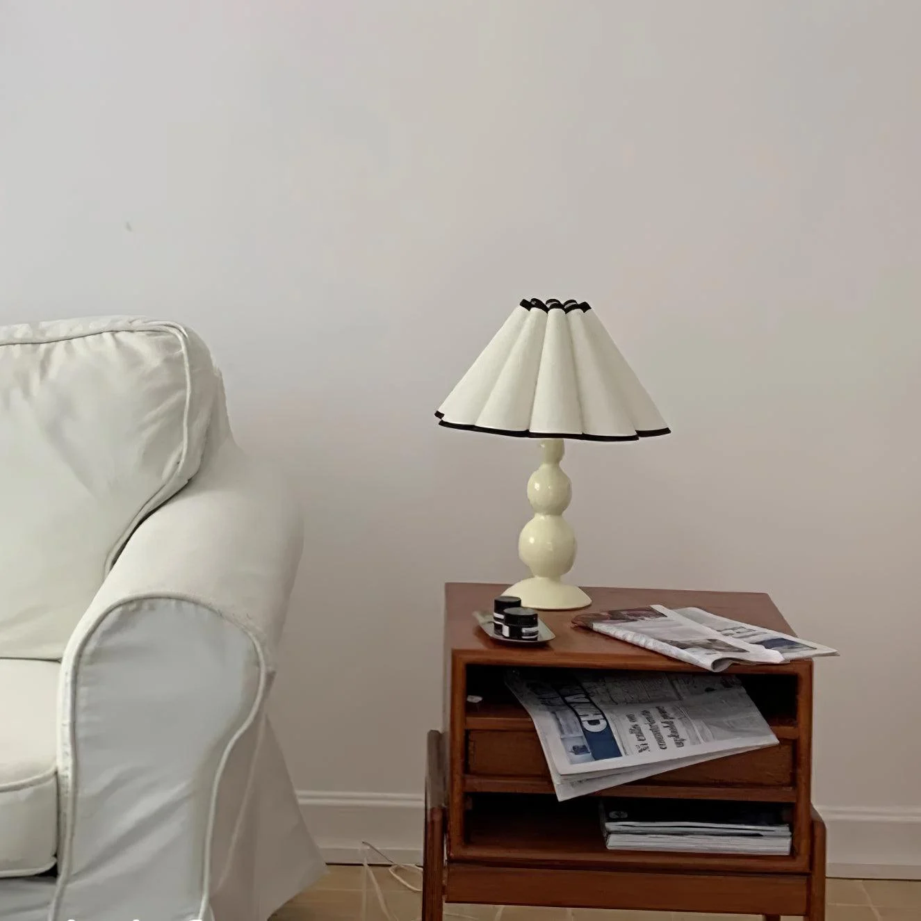 The Lauren Table Lamp is a nostalgic nod to vintage charm with its unique pleated shade, reminiscent of delicate petals. This lamp is as much an ornament as it is a source of light, with a base featuring distinctive, curvaceous forms that draw the eye. Designed to harmonize its shape and shade, it stands not just as a lighting fixture but as a centerpiece of decor. Whether placed on a side table or a bookshelf, the Lauren Table Lamp adds an element of adorable sophistication to any room, blending seamlessly with both classic and contemporary styles.
