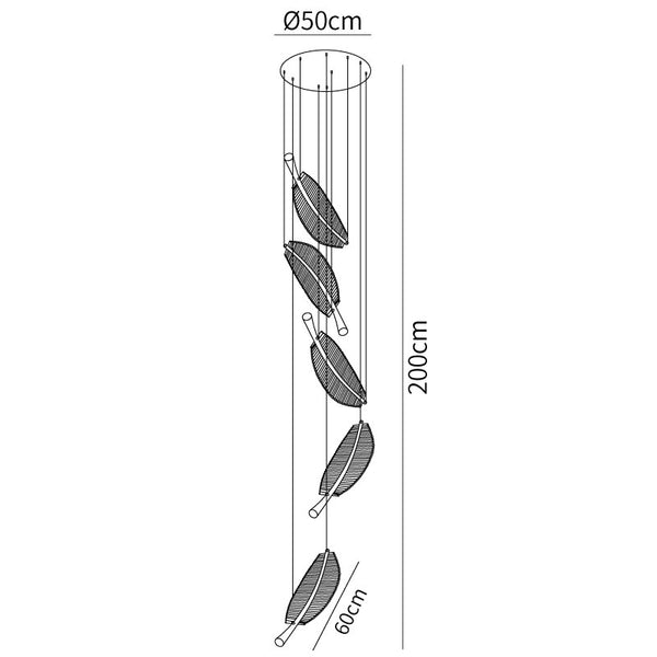5 heads Size: Dia 50cm x H 200cm / ∅ 19.7″ x H 78.7″