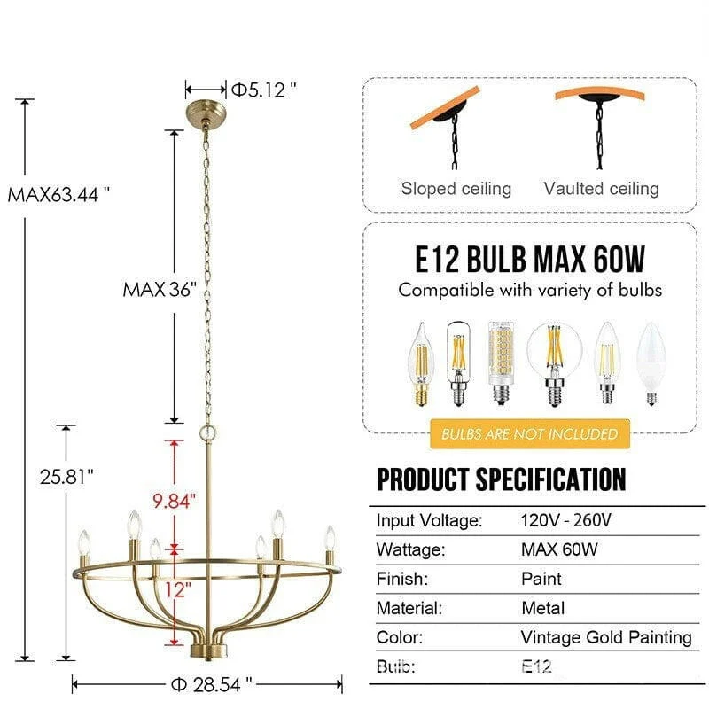 With its wide lighting area of 10 to 15 square meters, this pendant light illuminates your space with a warm and welcoming glow. The pendant is fitted with six LED bulbs, ensuring long-lasting and energy-saving performance. Please note that bulbs are not included, giving you the freedom to choose your desired brightness and color temperature that best suits your personal style and ambience.