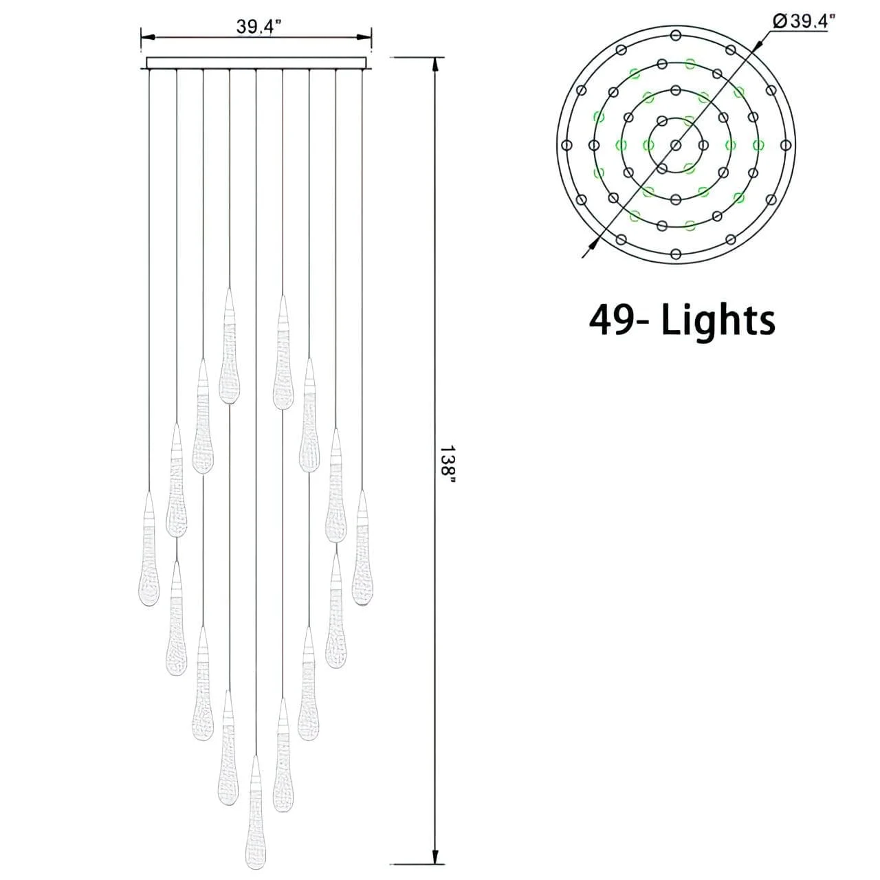 49 Lights: Dia 100cm x H 150cm / ∅ 39.4″ x H 59″
