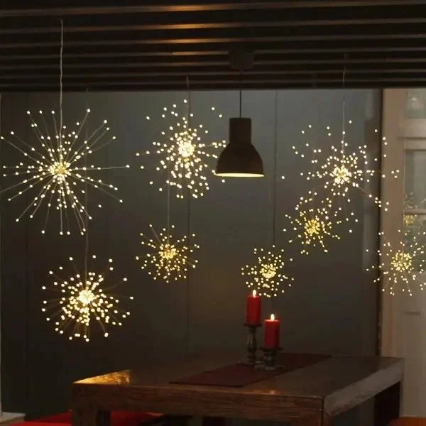 Enhance your space with the LED Starburst Lights, a modern firework chandelier that adds a touch of elegance and creativity to any setting. Featuring a flexible and bendable design, these lights can be shaped into radiant fireworks, flower bouquets, or unique lighting arrangements. Perfect for gardens, patios, living rooms, or restaurants, they create a stunning ambiance both indoors and outdoors.