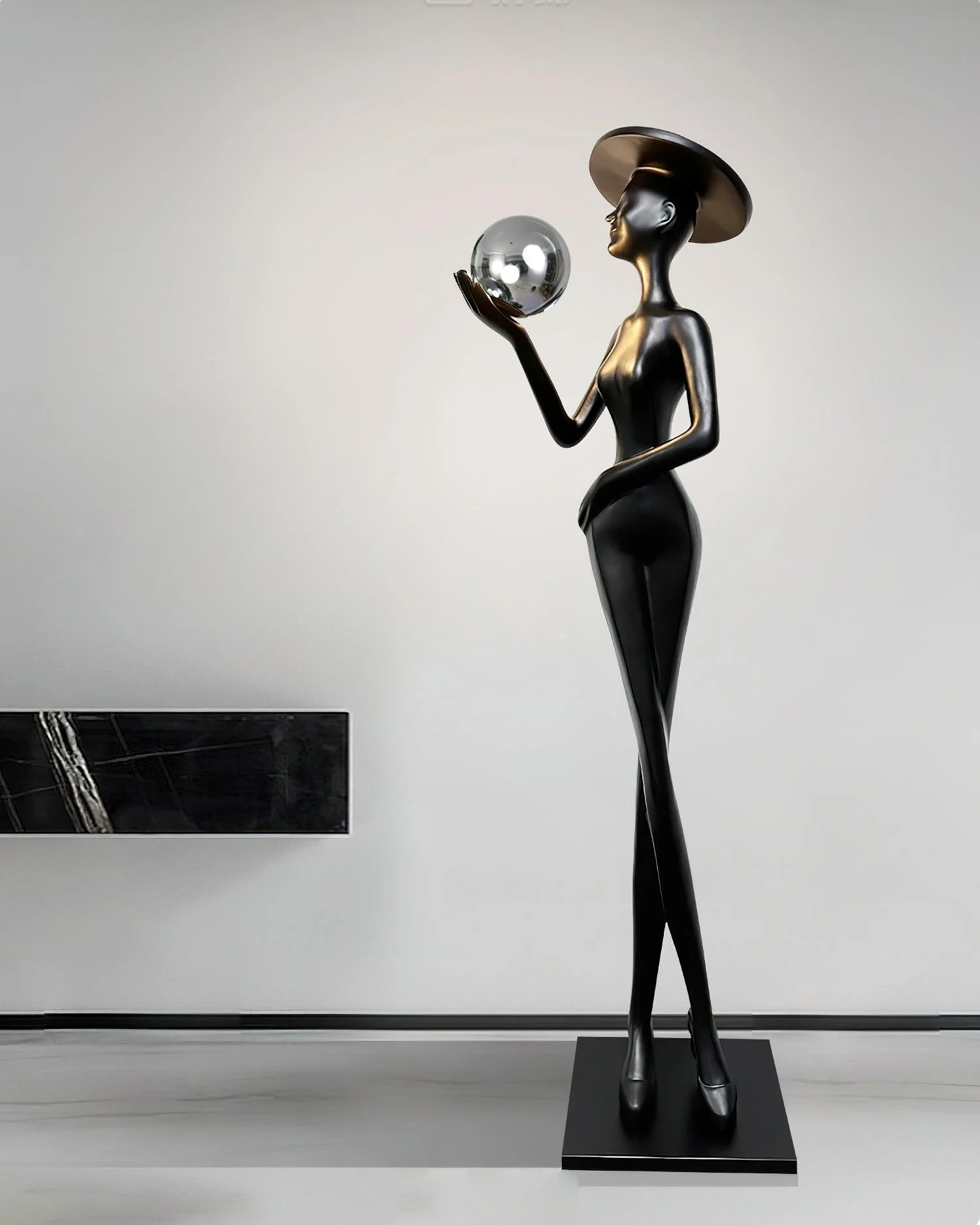 The Lexa Floor Lamp is a striking fusion of tradition and modernity, its sleek silhouette capturing the essence of contemporary design while cradling a sphere of light. This statuesque lamp brings a vibrant energy to any room, its unique form casting both illumination and shadow in a dance of enchantment.