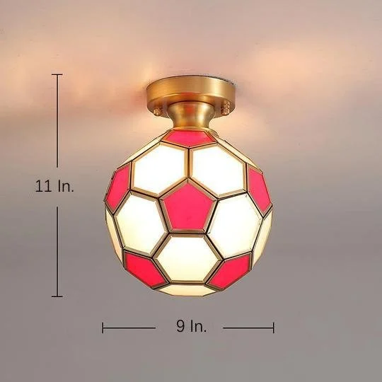 - The unique and attractive shape of the creative cartoon football shaped ceiling lamp is sure to be loved by children. With its three-dimensional spherical design, 360° ambient lighting illuminates the entire room, and which making it your first choice for decorative lighting.