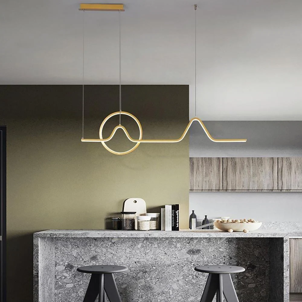 - The chandelier consists of a minimalist ring and a chic linear lamp body, which is available in gold and black. This creative and stylish pendant light is a timeless home decor lighting.