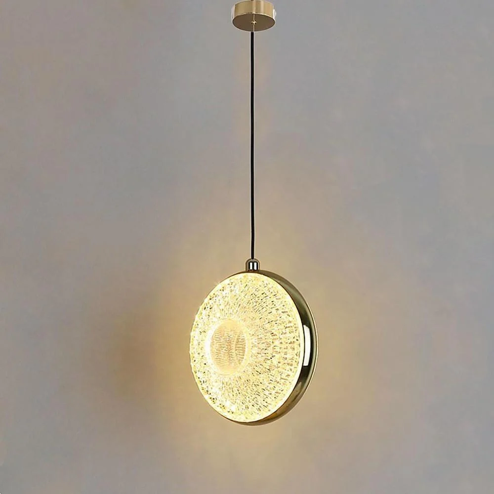 - This ring-shaped pendant lamp is made of electroplated metal and acrylic, and its lampshade edge light source, delicate and durable. This hanging light fixture is perfect for any style, from modern to vintage.