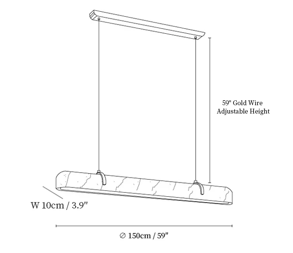 59″ Adjustable hanging height gold cable, which can be lengthened as required.