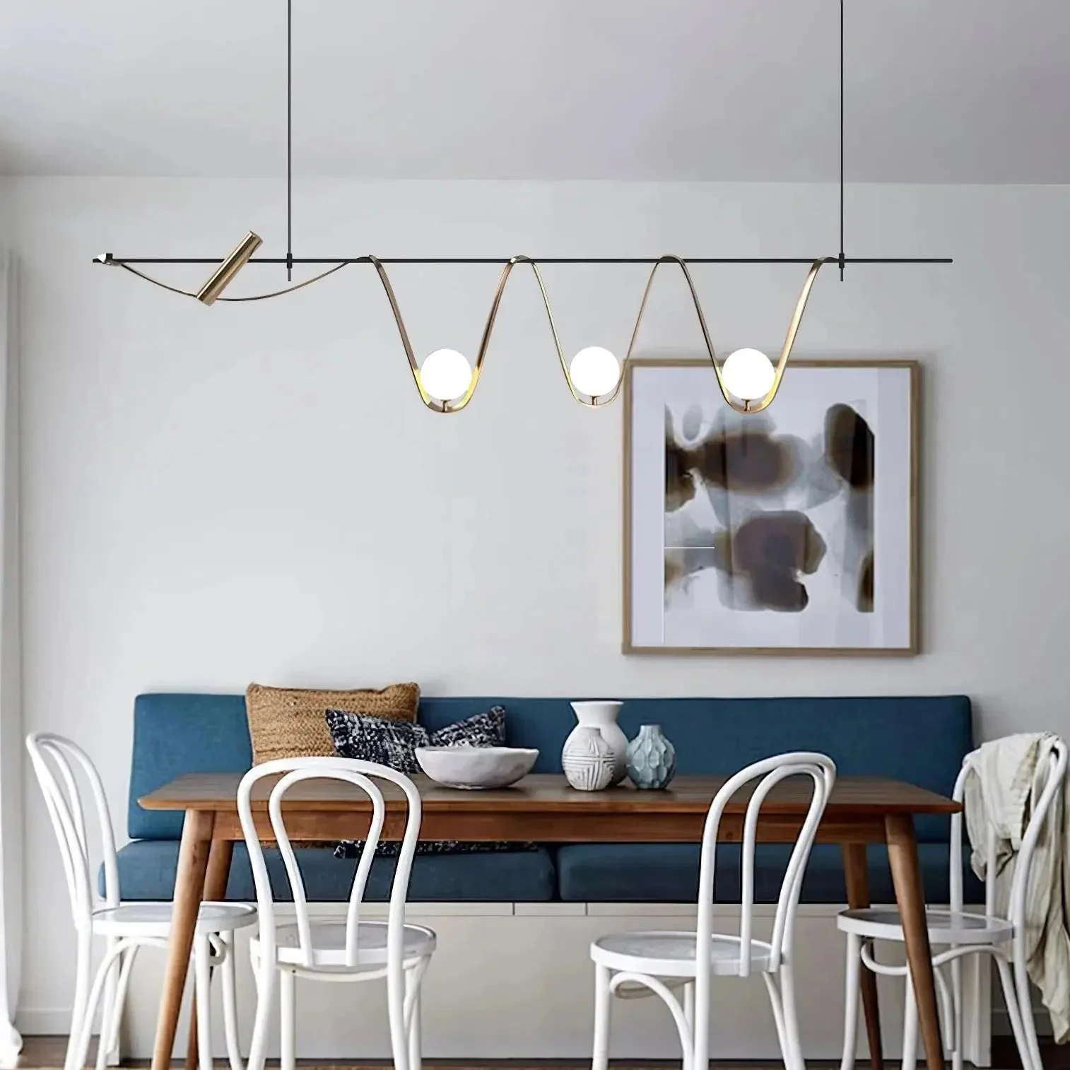Inspired by pearl jewelry designs, it uses a wraparound, an elongated light body, and a second anchor point to hang a light. Simple shape, subtle details, fill light in the space, form a simple lighting level, staggered feeling, soft lighting reveals fresh and bright comfort.